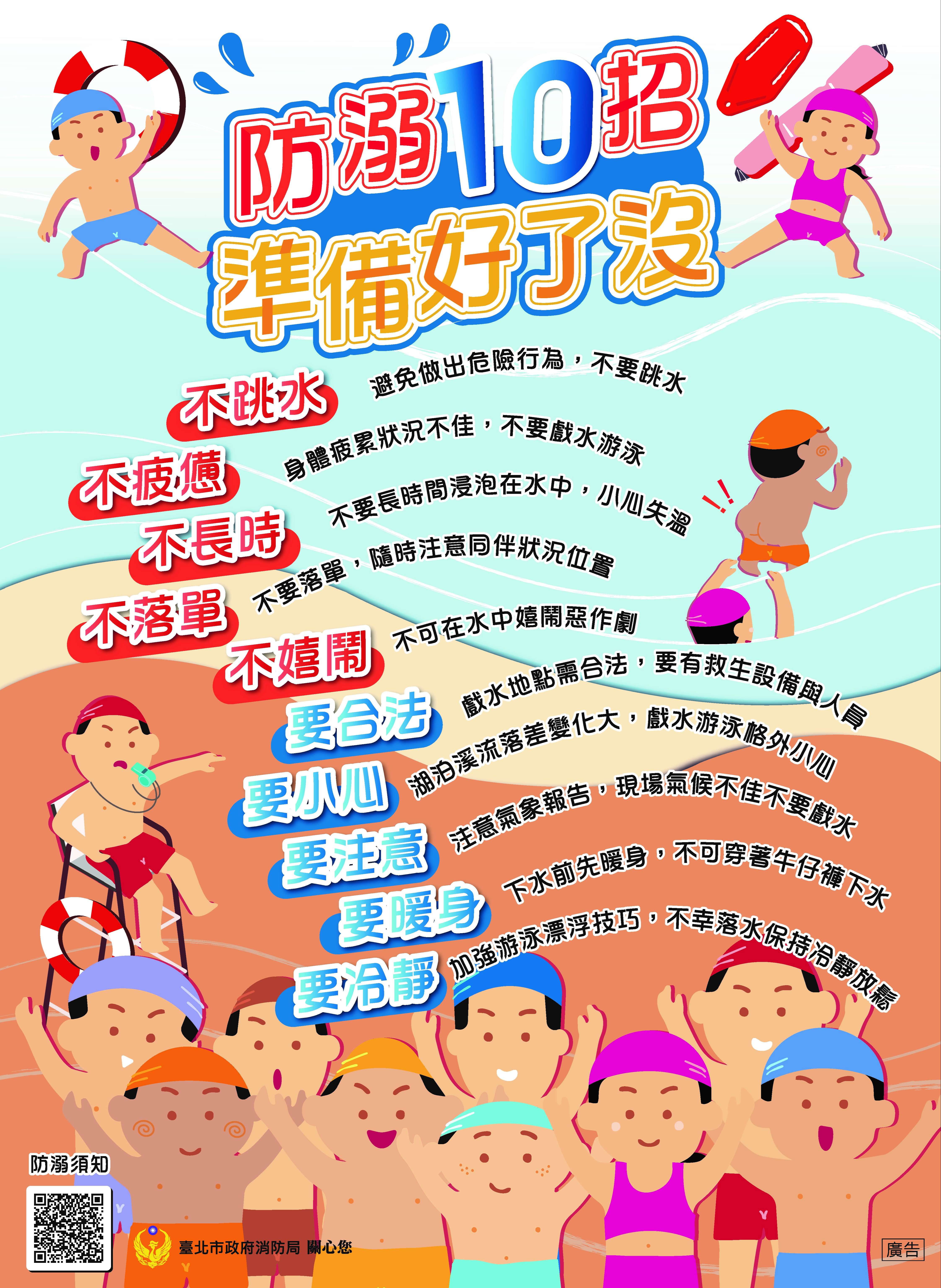 學生於暑假期間至戶外水域遊憩時,應避免至無救生人員 之場所或水域遊玩,於大雨或颱風來臨前等天候不佳時應 遠離水域,以免發生危險。