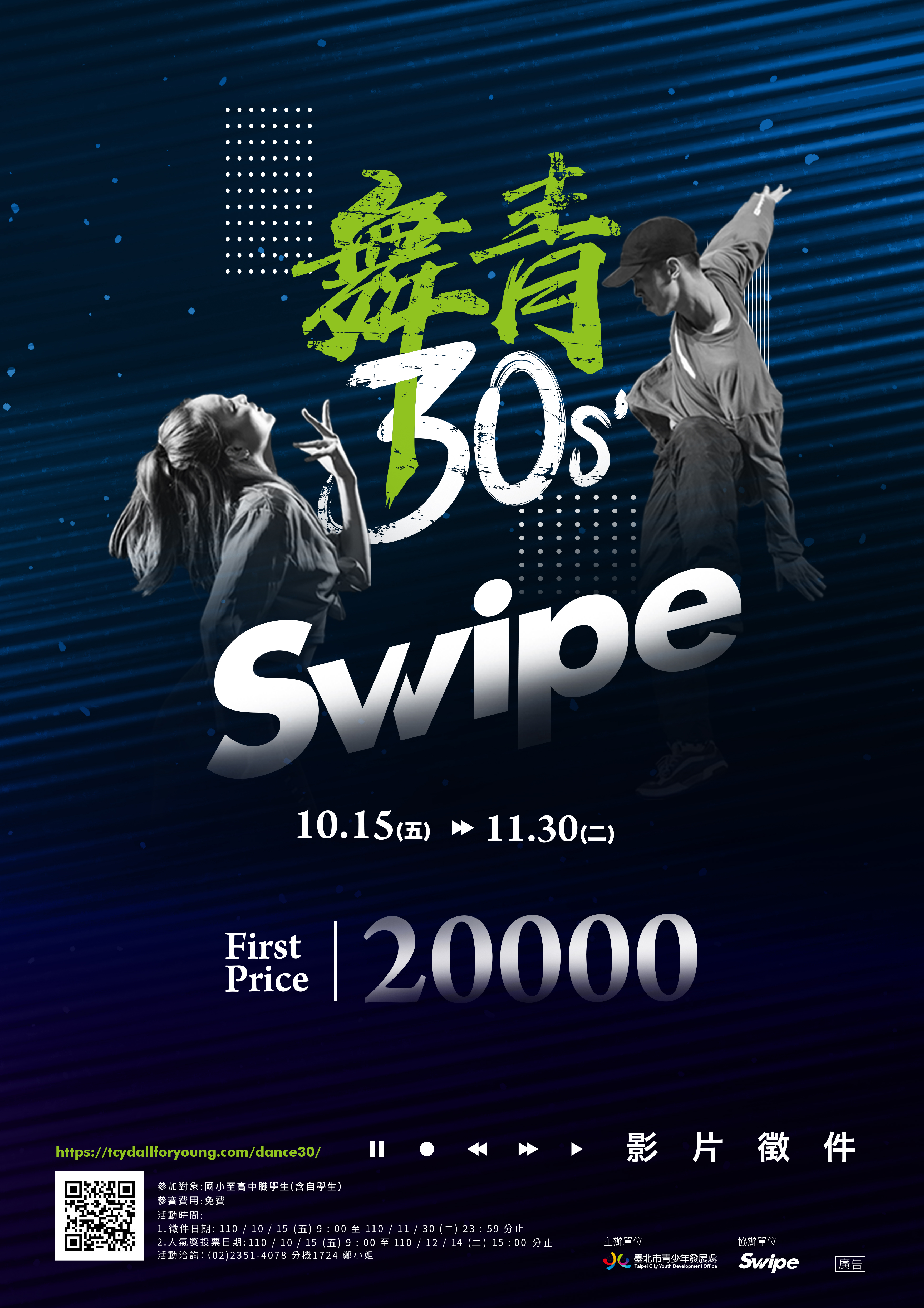 2、人氣獎投票:即日起至110年12月14日(星期二) 15時 止。 (三)報名費用與方式:免費,一律採網路報名https://tcydallforyoung.com/dance30/