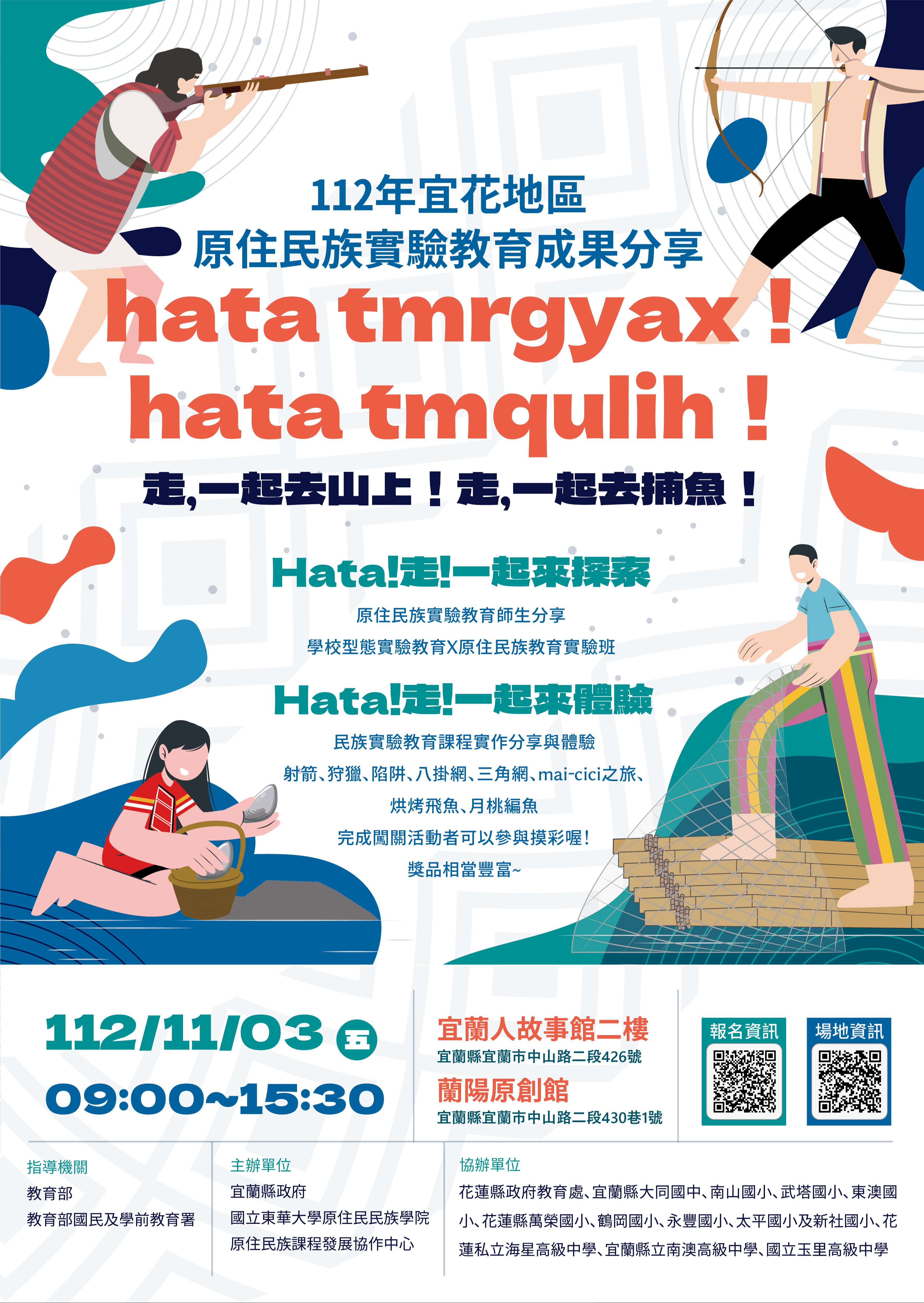 二、旨揭活動係由宜蘭及花蓮地區原住民族實驗學校進行課程、教學與學生學習成果分享,並透過闖關活動之方式, 由各校師生合作進行民族文化課程體驗,期能促進與會人員對於原住民族實驗教育有更為深入之理解,盼創造一聚焦、交流及多元對話的機會,提供相互參照與學習的平台。